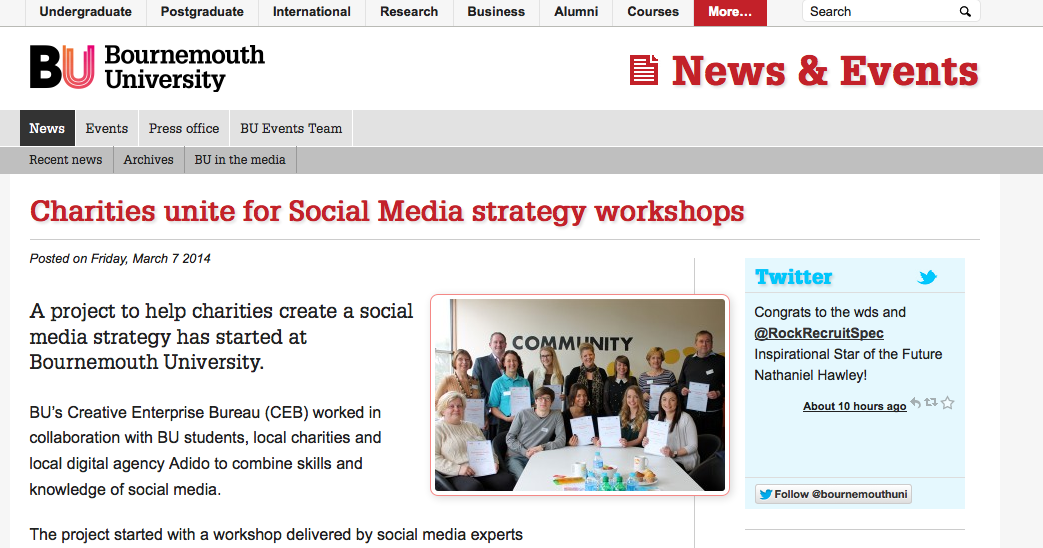 A summary of the Social Media Management – content planning, prosthesis daily routine and tools workshop delivered on June 11 as part of BU’s Festival of Learning “Only organizations with big budgets do well on social media” someone told me yesterday at the Social Media Management workshop I ran as part of BU’s Festival …