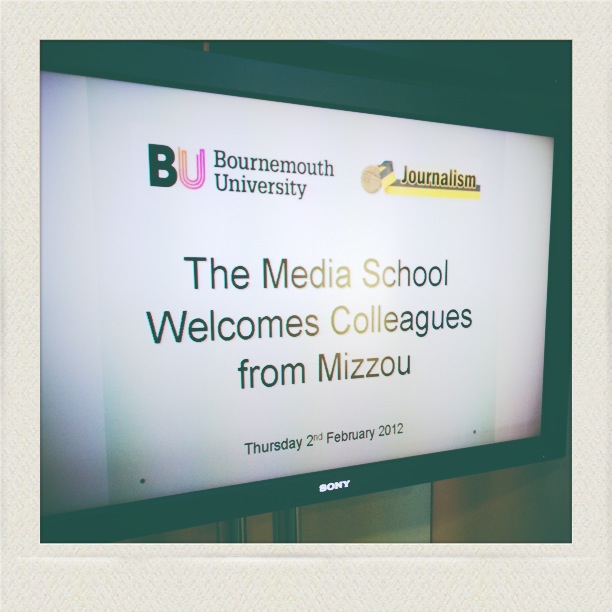 Yesterday (Thursday, this site February the 2nd) a group of students enrolled in the London Programme of the University of Missouri-Columbia came to visit the Media School of Bournemouth University. They are in the UK for a semester undertaking internships but their programme also includes two classes during which they are usually joined by guest speakers.
