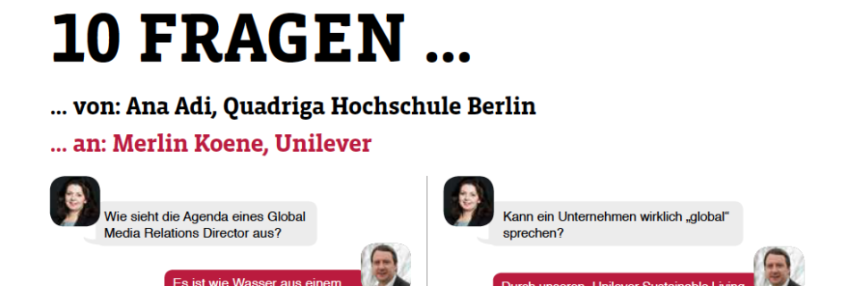 At the beginning of April, PR Magazin, a magazine dedicated to communicators in Germany and beyond, published my answers to Andrea Fratini‘s questions, Director of Corporate Communications at the Bauer Media Group in its “Im Chat” section. As the section is dedicated to communicators asking other communicators about various issues relevant to their job and practice, the …