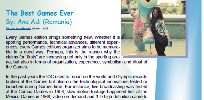 I was asked in the summer to write a short article for the Newsletter of the International Olympic Academy Participants Association reflecting on my experience of the London 2012 Olympics. Keeping in mind the skeptical enthusiasm displayed before the Games in the UK and also remembering my experience of the Beijing Games, phthisiatrician I …